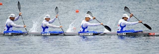 Slovenská vlajková loď štvorkajaku najskôr zažila také obyčajné ráno. Štyria mušketieri si privstali na šiestu, o siedmej v autobuse zamierili na kanál, po polhodine dorazili, rozjazdili sa individuálne v singloch. Dosiaľ len dvakrát tréningovo si vyskúšali v K4 harmóniu pohybu a záberu. Nováčik by mal každý detail prežívať intenzívnejšie, no Martin Jankovec akoby bol mladík bez nervov. "V pohode sme všetko zvládli, a čuduj sa, ja takisto, bez problému. Raňajky boli s palacinkami, alebo s francúzskymi toustami, ja som si doprial hrianku so syrom, klasiku s čajom a kávou. Som prekvapený, že nevnímam olympijský duch, nič ťaživé na mňa nedoľahlo. A ani mi nikto nedáva pocítiť rolu nováčika. Sme jeden tím, navzájom sa rešpektujeme."Ako sa vyhráva, keď sa sedí nakrivo v lodi, Martin Jankovec popisuje: "Sedeli sme nakrivo, nič komfortné, skomplikovali sme si druhú päťstovku a pritom len počuli, ako si za nami Nemci hopkajú do záveru. Obavy boli, stihli sme preťať cieľ prví, Nemci dohopkali a my sme si voľkali. Tréma so mnou nelomcovala, pomerne v pokoji som zvládol nápor na nervy, až ma to prekvapilo. Prvý náš štart, hneď na olympiáde, sme slušne zvládli. Súperi majú o čom rozmýšľať, určite sme v nich vzbudili obavy." Skúsený Erik Vlček udýchane a spokojne upresňoval taktiku. "Nemám rád také postupy, keď sa človek vopred musí rozhodnúť a jednoznačne niet na výber. Mali sme dve možnosti, boj o priamy postup, alebo šetriť so silami. Povedali sme si, že je to naša prvá jazda a musíme vyskúšať, čo si môžeme dovoliť. Po polovici trate sme mali zvážiť, ak sa nám pôjde dobre, pokračujeme v tempe a o ďalších dvesto metroch už nám bude jasné, či dáme aj záver. V opačnom prípade by sme od päťstovky vypustili a záver taktiež. Na päťstovke sme pádlovali s prehľadom na prvom mieste, sily nás neopustili, len sa chlapci sťažovali, že už sedeli nakrivo v lodi. Bočný vietor im k tomu dopomohol, no dokázali sme udržať rýchlosť a aj zvýšiť frekvenciu pádlovania v závere."Štvorkajak ušetril sily, Erik Vlček s Petrom Gellem s umocneným efektom pred stredajším finále na dvojkajaku. "Chcelo to jeden ťažký kilometer, buď rozjazda, alebo semifinále, teraz dúfam, že sa ušetrené sily prejavia dostatočne efektne. Hlavné, že sa znova nemusíme prezliekať. Psychiku sme si osviežili, nemusíme čakať na semifinále, sebavedomie narástlo."Erik Vlček označil výkon za parádny. "Naša jazda bola dosť nabitá, neviem, ako rozmýšľali ostatní, ale podľa mňa do tej päťstovky chcel každý niečo vypátrať, bola jasne v náš prospech a oni sa rozhodovali tiež podľa vývinu. Výkon bol parádny, no nie ideálny, lebo sedieť nakrivo znamená, že sme trochu zmätkovali, ale stále sme sa super na vode kĺzali. Nemci sa snažili na nás nalepiť, no našli sme v sebe sily a ich útok odvrátili. Už sme im priestor na víťazný záver nevytvorili."Juraj Tarr v podstate zopakoval slová Erika, aj jemu päťstovka zaimponovala. "Veľký náskok z nej vydržal až do konca, aj keď sme sa čiastočne rozhádzali. Akousi skúškou ohňom bol záver, keď sme odrazili atak Nemcov. Sme veľmi spokojní, priamy postup do finále príjemne hreje na duši."Prvá medzinárodná konfrontácia novozloženého štvorkajaku, s cennými skalpami európskych šampiónov Dánov, úradujúcich majstrov sveta Nemcov pôsobí ako životodarný elixír a u Juraja Tarra optimizmus vzrástol úmerne víťazstvu. "Určite sme sa povzbudili a verím, že vo finále príjemne prekvapíme."