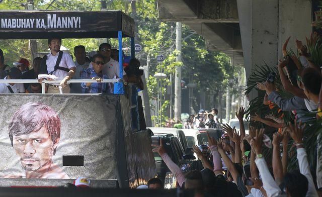 Tisíce fanúšikov lemovali cestu populárneho boxera ulicami mesta. Pacquiao sa im poďakoval za podporu a zdôraznil, že napriek verdiktu sa cíti ako víťaz. "Chcem sa poďakovať všetkým, ktorí ma v súboji s Mayweatherom podporovali. Dal som do toho všetko, ale neviem čo sa stalo. Pozeral som ten zápas ešte veľakrát, počítal som údery a myslím si, že som mal ten duel o dva body vyhrať. Ale akceptujem toto rozhodnutie pretože viem, že v srdciach ľudí som víťazom," citovala agentúra DPA slová 36-ročného Pacquiaoa.