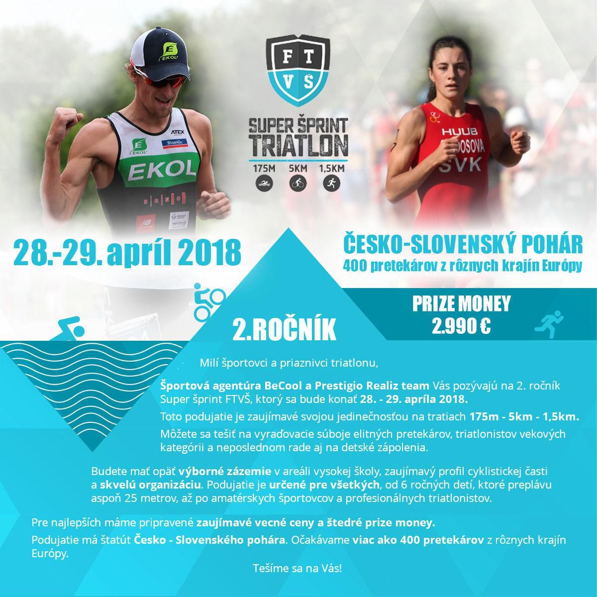 FTVŠ SUPER ŠPRINT odštartuje trilógiu podujatí po celom Slovensku. Druhý diel s názvom KARPATSKÝ TRIATLON sa uskutoční v Lozorne 23.6.-24.6.2018. V auguste sériu triatlonov ukončí DOMAŠA TRIATLON, ktorý prebehne 27. - 28. augusta 2018.