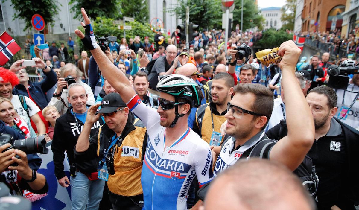Peter Sagan obhájil v nórskom Bergene titul svetového šampióna v cestnej cyklistike. Slovenský reprezentant, ktorý vlani triumfoval v Dauhe a rok predtým ovládol preteky v americkom Richmonde, zvíťazil v záverečnom špurte nedeľňajších pretekov s hromadným štartom.