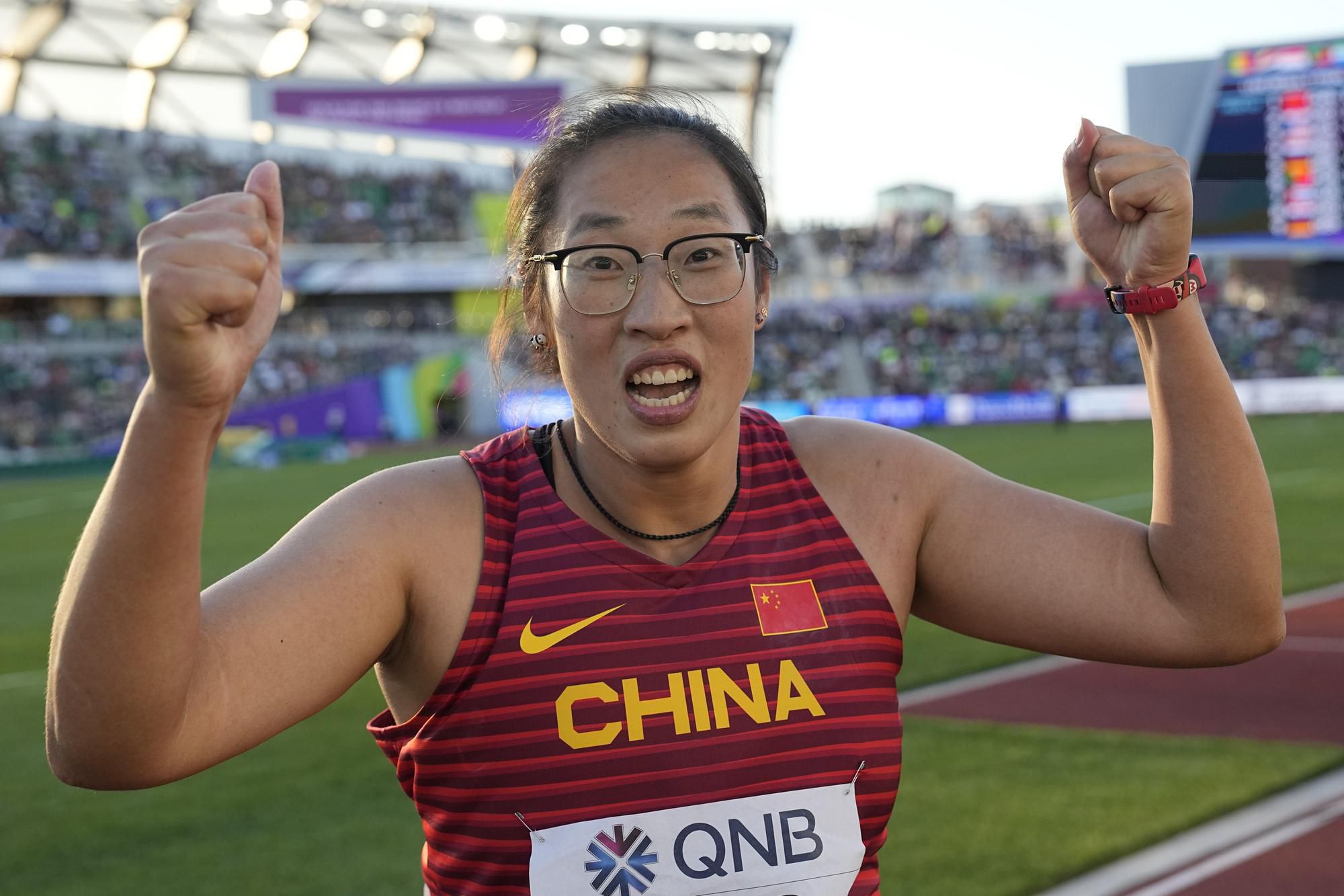 Atlétka z provincie Šandong ešte nemala globálnu medailu, vlani na OH sa nedostala do finále, v Dohe 2019 bola piata. Osobné maximum pred finále mala rovných 66 metrov z apríla tohto roka. Netradične v okuliaroch ako mužský víťaz disku a s množstvom emócii a pokriku, čo u čínskych atlétov nebýva zvykom.
