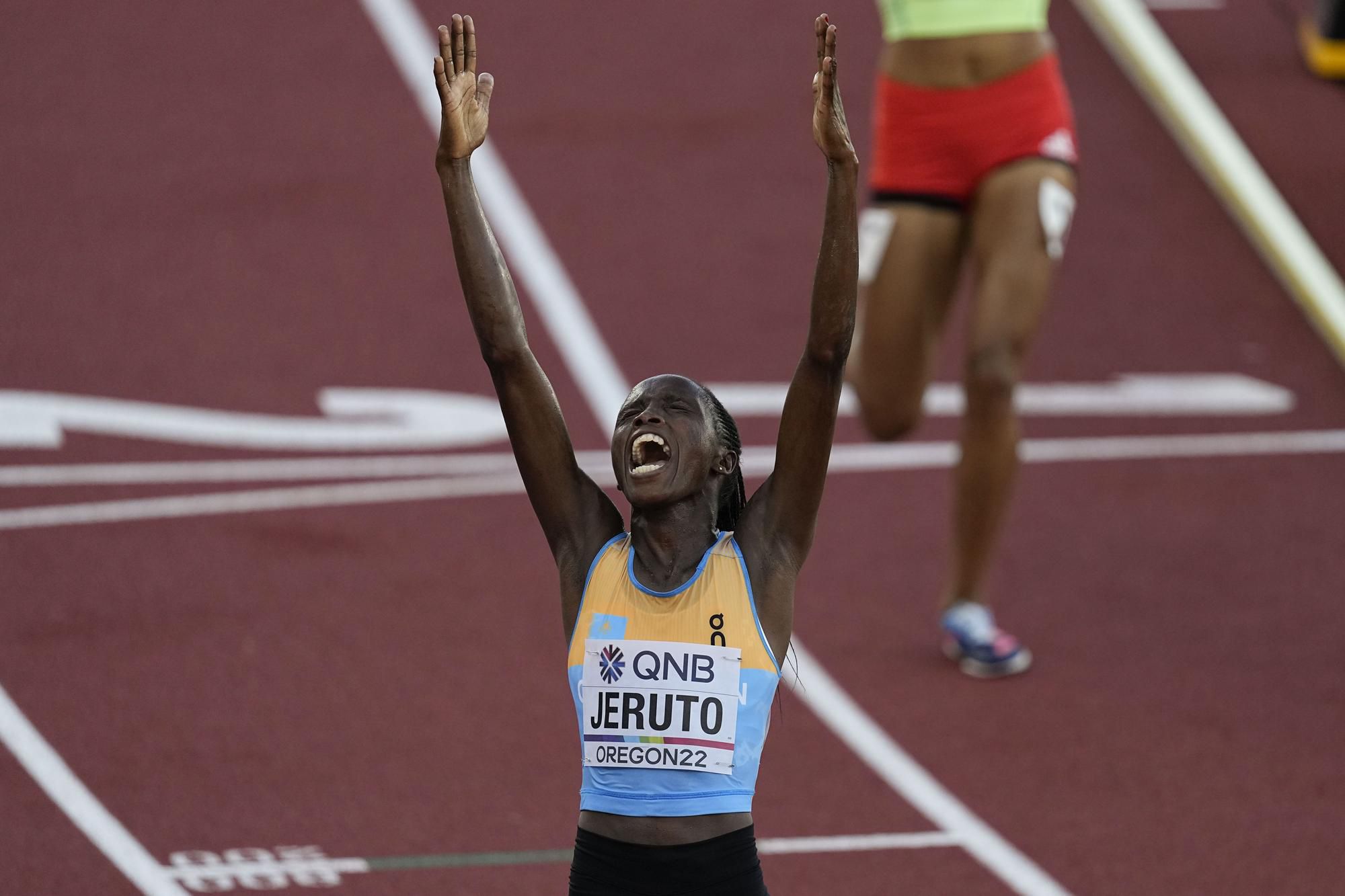 V Eugene po dobehu bola akoby v tranze, ale nečudo, zlepšila sa na 8:53,02 (kilometrové úseky 2:57-3:00-2:55). Je to tretí čas histórie, aj rekord MS, výkon roka a národný rekord.