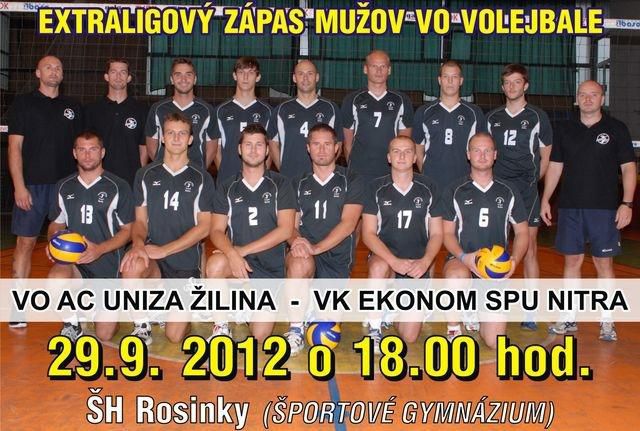 Nový ročník volejbalovej extraligy mužov začína už túto sobotu 29. septembra 2012 a VO AC Žilina privíta vo svojej premiére na domácej palubovke favorizovaný VK SPU Nitra. Stretnutia začína o 18:00 hod.
