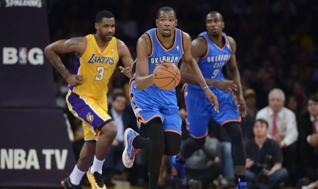 Zraneniami zdecimovaní domáci bez Kobeho Bryanta, Pau Gasola, Steva Nasha, Nicka Younga či Jodieho Meeksa vyše 48-percentnou úspešnosťou streľby z hry trápili vysokého favorita, ktorý rozhodol o svojom úspechu až v záverečnej štvrtine. Thunder ju vyhrali 35:21, v priebehu duelu zaostávali aj o 15 bodov.
