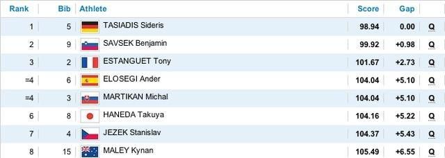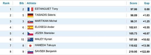 16:16... Štvrtý v poradí bol Španiel Ander Elosegi. Časom 102.61 s sa dostáva sa prvé miesto!