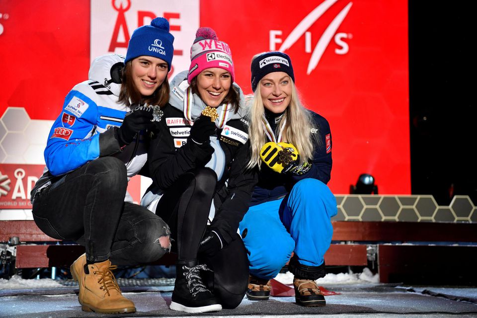 Tages Anzeiger: "Švajčiarka zdolala v dueli o zlato Petru Vlhovú o tri stotiny a v Are vyhrala kombináciu rovnako ako pred dvoma rokmi v St. Moritzi."
