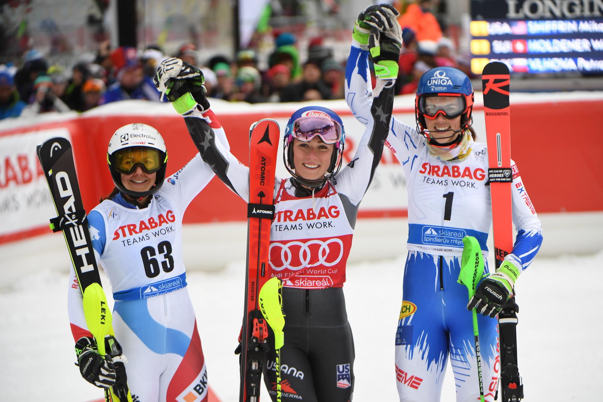 Nadšení slovenskí fanúšikovia v Špiindlerovom Mlyne aj v nedeľu oslavovali Petru Vlhovú ako víťazku, hoci skončila "až" na treťom mieste.