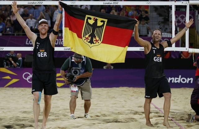 Zlaté medaily v plážovom volejbale na Hrách XXX. olympiády v Londýne získali nemeckí reprezentanti Jonas Reckermann a Julius Brink. Vo štvrtkovom súboji o najcennejší kov zdolali brazílske duo Alison Cerutti, Emanuel Rego za 62 minút 2:1 (21, -16, 14).