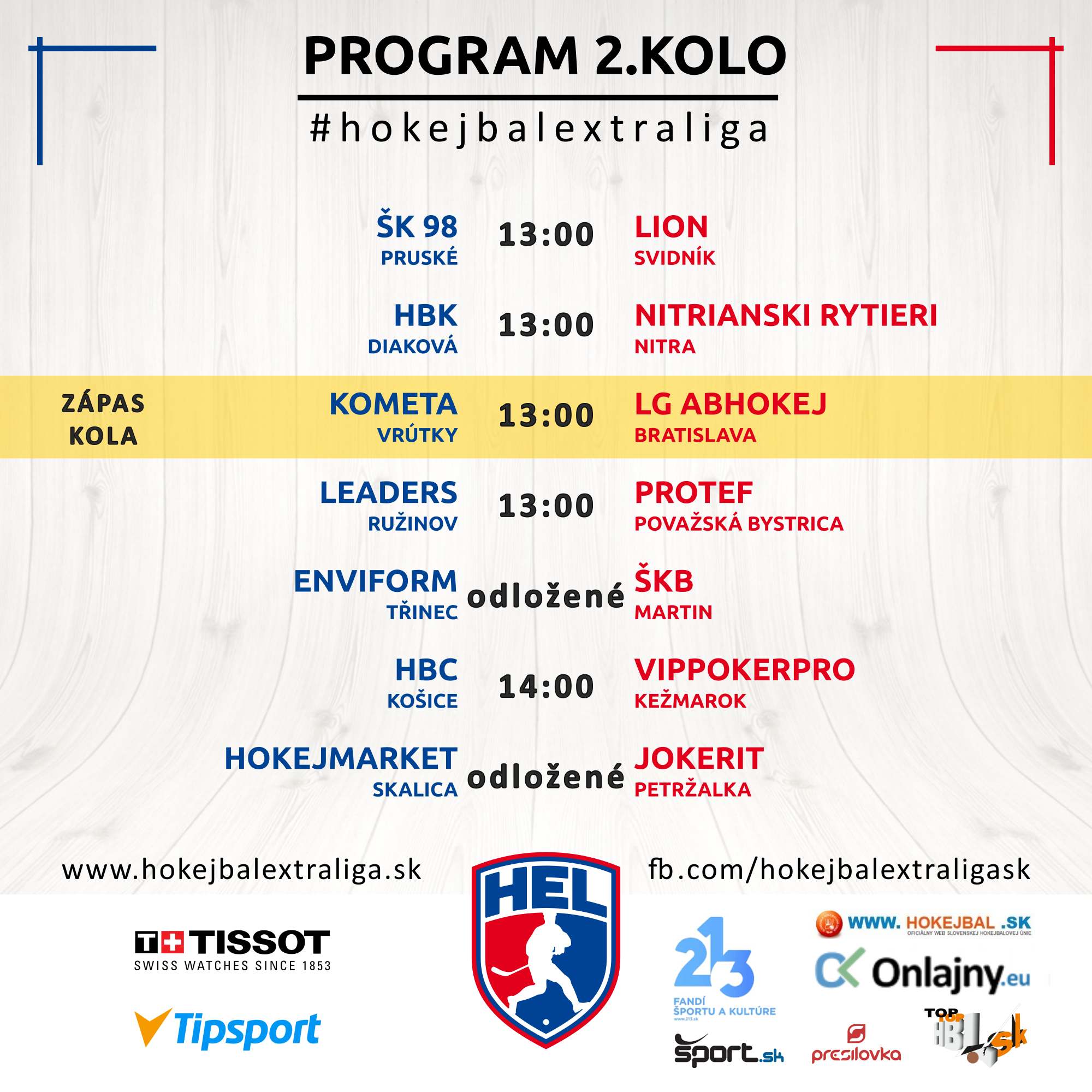 V šlágri 2. kola vyzve Kometa, povzbudená výhrou v derby s Martinom, bratislavský LG, ktorý rovnako v dobrej nálade, po výhre nad majstrom, bude chcieť vo Vrútkach minimálne bodovať. My mu na to rozhodne šance dávame, ale výsledok sa naozaj tipuje ťažko.