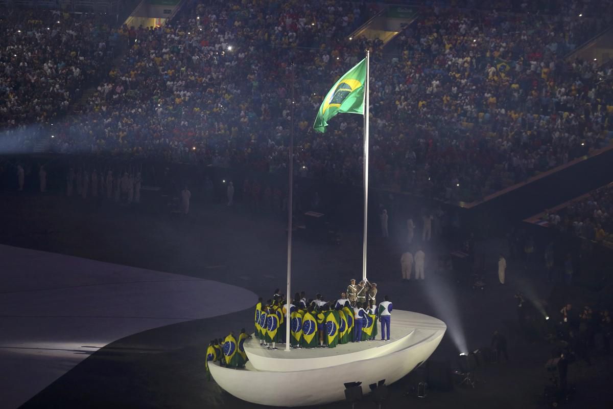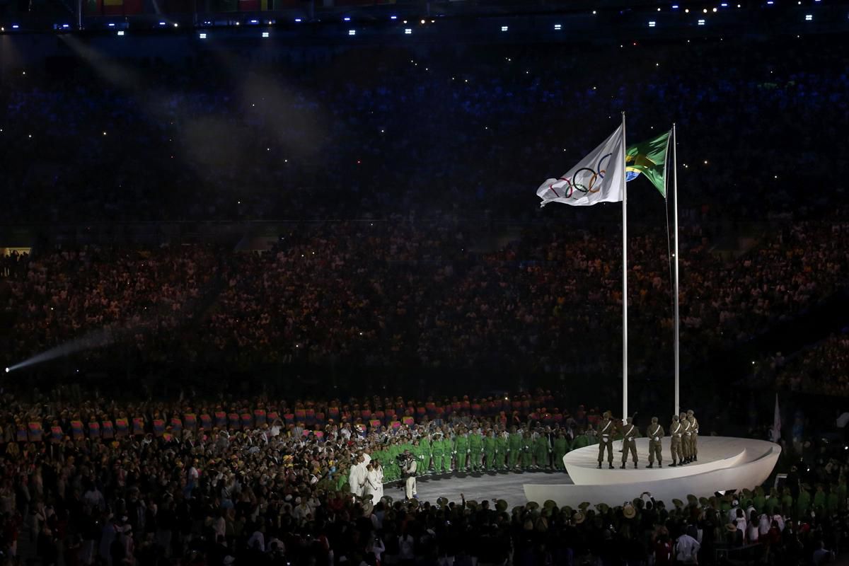 Pri nástupe športovcov každý z nich priamo na ploche do špeciálnych stojanov zasadil nový strom. Presne 11.000 sadeníc rôznych druhov stromov za všetkých aktívnych účastníkov OH sa potom v stojanoch symbolicky premenilo na olympijské kruhy v zelenej farbe. Pred fanúšikov a športovcov vzápätí predstúpili prezident MOV Thomas Bach a šéf organizačného výboru Carlos Arthur Nuzman.