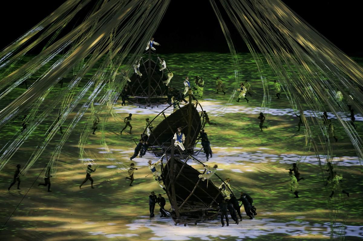 Otvárací ceremoniál si pod svoju režisérsku taktovku zobral Fernando Meirelles, ktorý sa predtým preslávil najmä filmom Mesto bohov o živote ľudí v najchudobnejších slumoch Ria de Janeira. Jeho tím nepripravil takú pompéznu šou ako pred ôsmimi rokmi v Pekingu, v rozpočte sa výrazne šetrilo aj v porovnaní s ceremoniálom 2012 v Londýne. Napriek tomu sa Brazílčania v skvelej atmosfére prezentovali srdečným pestrofarebným programom s dôrazom na ekológiu, kreativitu, rytmus a emócie.