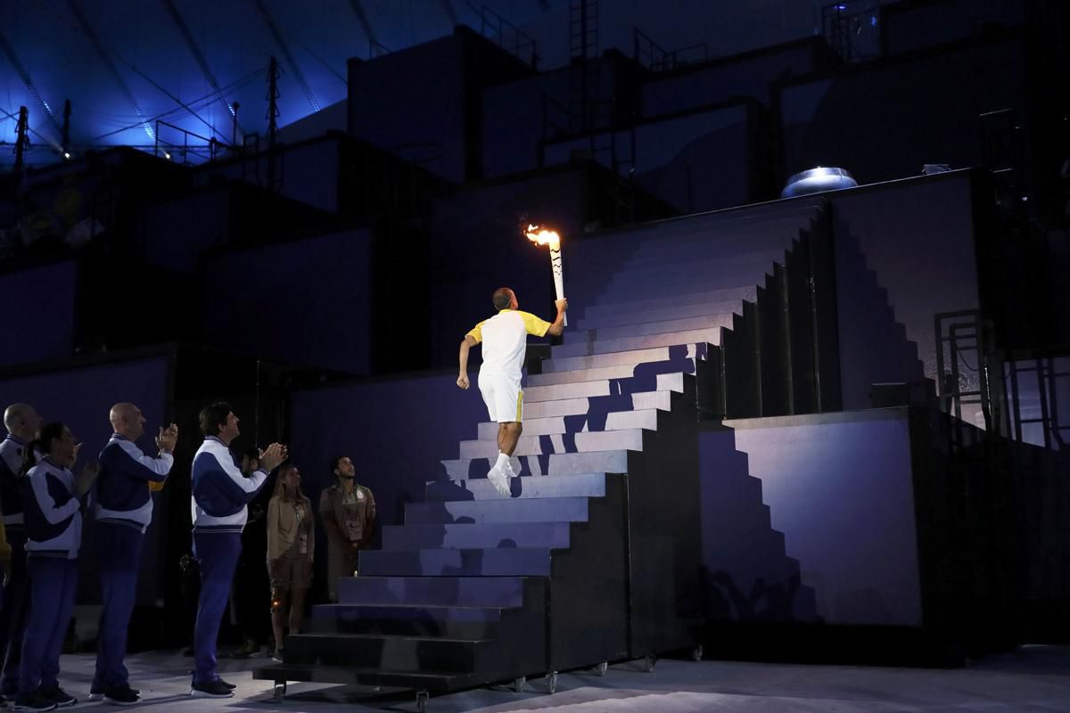 Olympijský oheň na štadióne zapálil bývalý maratónec a držiteľ ceny fair play Vanderlei Cordeiro de Lima, ktorého o triumf na OH 2004 v Aténach obral atak jedného z divákov na trati. De Lima bol posledným z 12.494 ľudí, ktorí pochodeň niesli od jej zapálenia v antickej Olympii.