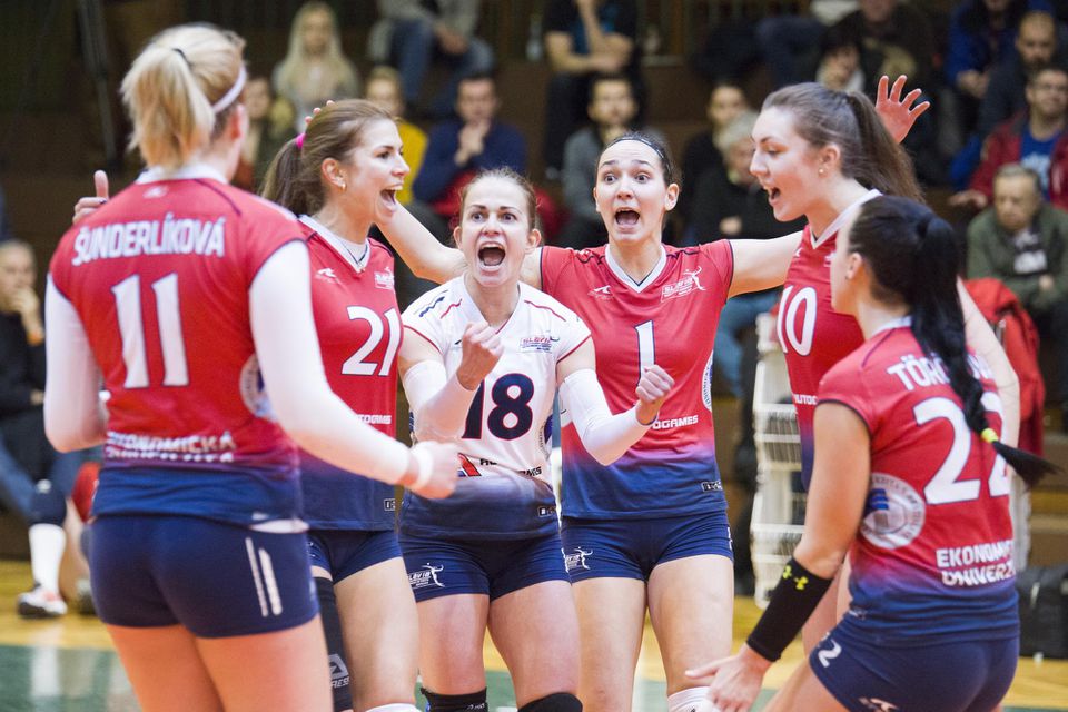 Hráčky VK Slávia EU Bratislava sú naďalej v hre o obhajobu titulu v slovenskej extralige volejbalistiek. V sobotňajšom piatom stretnutí semifinále play-off ročníka 2017/2018 "slávistky" zvíťazili 3:1 (-19, 24, 17, 20) na palubovke Volley project UKF Nitra a v sérii na tri víťazstvá uspeli 3:2.