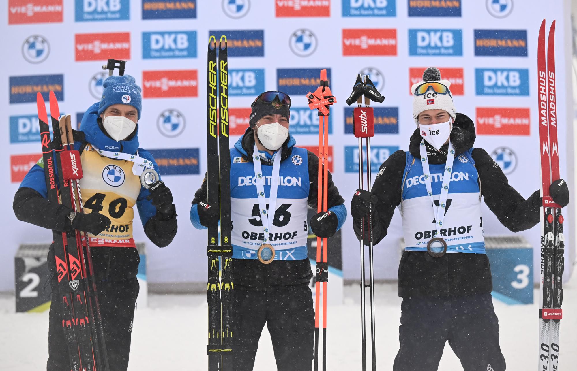 Tretie miesto si vybojoval Nór Sturla Holm Laegreid s mankom 15,1 sekundy. Z trojice slovenských reprezentantov sa umiestnil najvyššie Michal Šima na 54. priečke a spolu s 59. Šimonom Bartkom sa obaja predstavia v nedeľňajšej stíhačke.