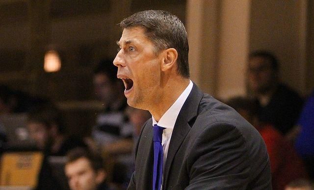Tréner basketbalistiek slovenského vicemajstra MBK Ružomberok Štefan Svitek "šije" taktiku na náročného súpera v osemfinále play-off Európskeho pohára FIBA 2012/2013, ktorým je ruský tím Dinamo-GUVD Novosibirsk.