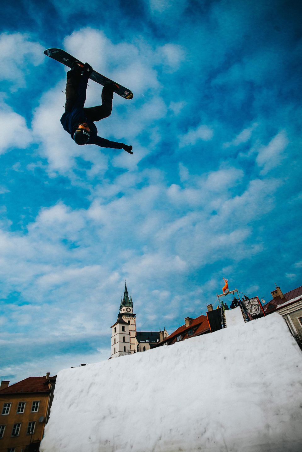 Uprostred kremnického námestia, niekde medzi morovým stĺpom a kostolom stojí obrovská kopa snehu. Aj tá už dostáva pod ťarchou bagra presné kontúry dopadu skoku. Povyše, medzi dvomi bránami stojí 12-metrová veža, z ktorej sa budú snowboardisti a freestyle lyžiari rozbiehať.