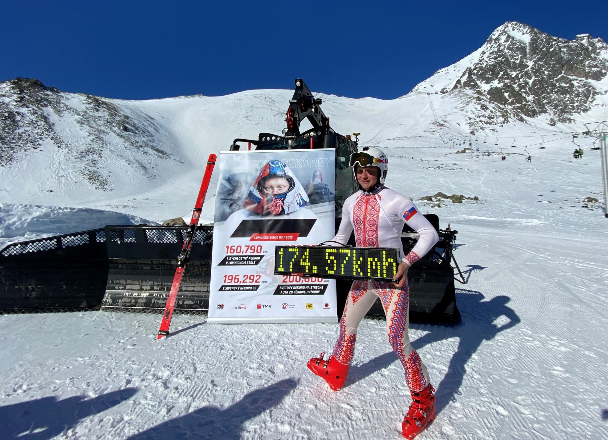 Zjazdovka v Lomnickom sedle vo Vysokých Tatrách má nový rýchlostný rekord. Michal Bekeš zo Ždiaru dosiahol na lyžiach rýchlosť 174,57 km/hod.
