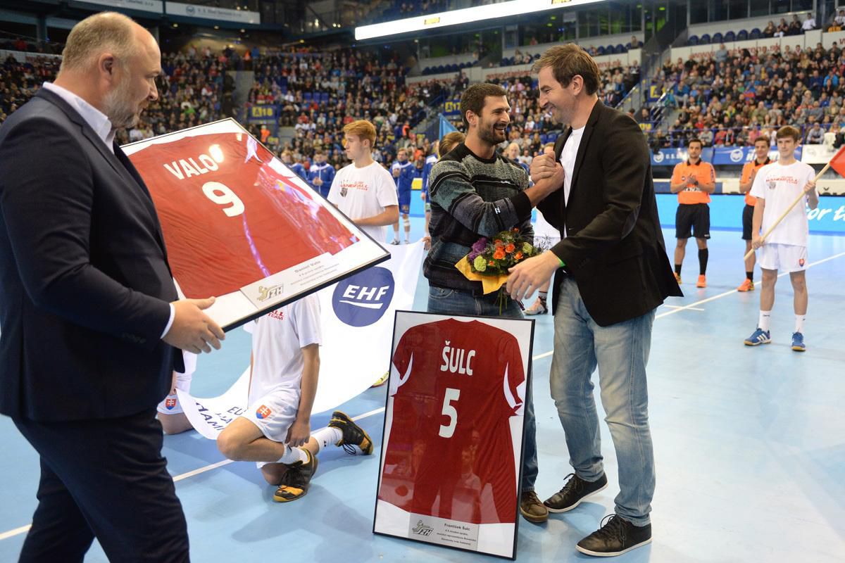 Veľmi peknú rozlúčku s reprezentáciou pripravilo vedenie Slovenského zväzu hádzanej (SZH) dvojici František Šulc - Daniel Valo. Obaja si pred zápasom so Švédskom (17:21) za potlesku viac než sedemtisíc divákov prevzali pamätné dresy s číslami 5 a 9. Úspešná dvojica bývalých reprezentantov to vníma ako príjemné ocenenie svojej práce v najcennejšom drese.