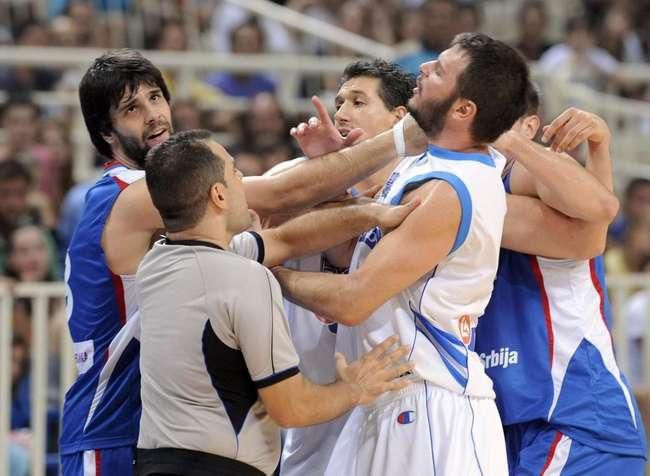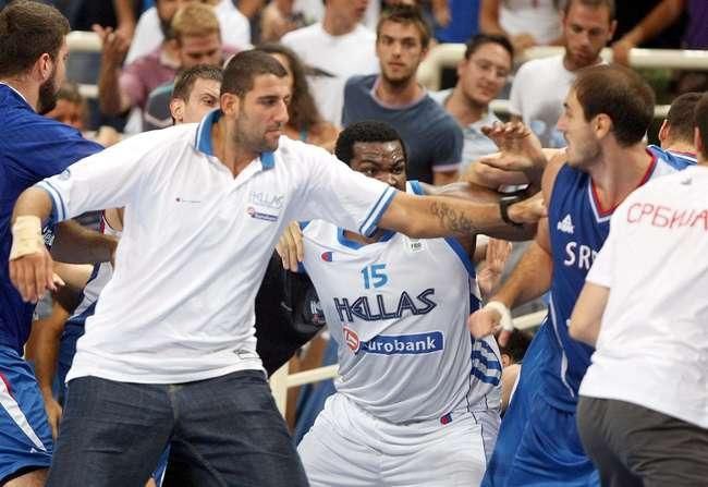 Do škaredej šarvátky a bitky hráčov vyústil basketbalový zápas Grécka so Srbskom na exhibičnom turnaji Acropolis v Aténach. Srba Nenada Krstiča dokonca po hromadnej bitke zatkla grécka polícia. Krstič, ktorý oblieka dres Oklahoma City Thunder, udrel protihráča Yiannisa Bourousisa, ktorý sa snažil ukončiť bitku v olympijskej aréne.