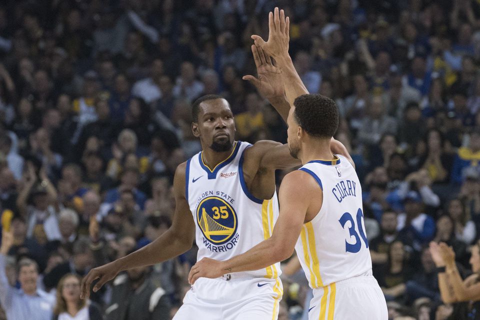 Tridsaťdva bodov Stephena Curryho a 27 v podaní Kevina Duranta sú za úspešným vstupom Golden State Warriors do sezóny NBA, v ktorej basketbalisti z Oaklandu obhajujú tituly z predchádzajúcich dvoch rokov.