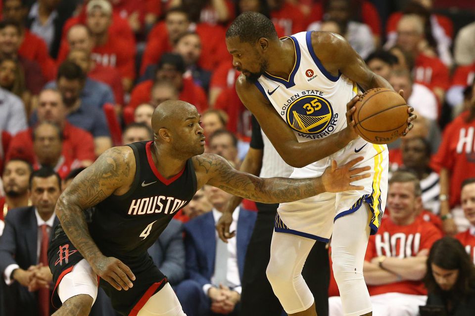 Najviac bodov: Harden 42 (5 trojok), Paul 23 (11 doskokov), E. Gordon 15 - Durant 37, K. Thompson 28 (6, trojok), Stephen Curry 18