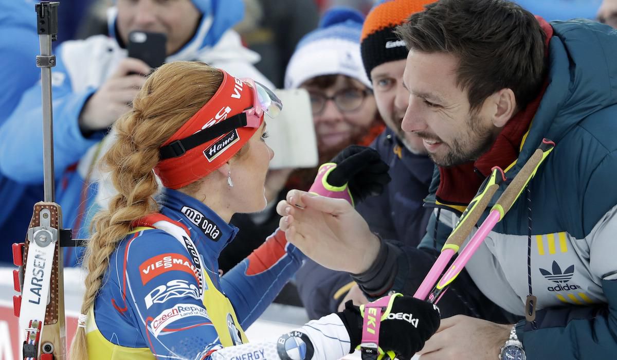 Gábina si dá bežecký okruh, príde na strelnicu, on tam na ňu čaká a spoločne strieľajú? Je príjemné byť po vlastnej kariére vrcholového športovca naďalej blízko pri vrcholovom športe? Ako funguje v Hochfilzene? Ako je to u nich doma v Prahe? Ako dlho bude jeho manželka pretekať? Naučí ju otvárať šampanské?