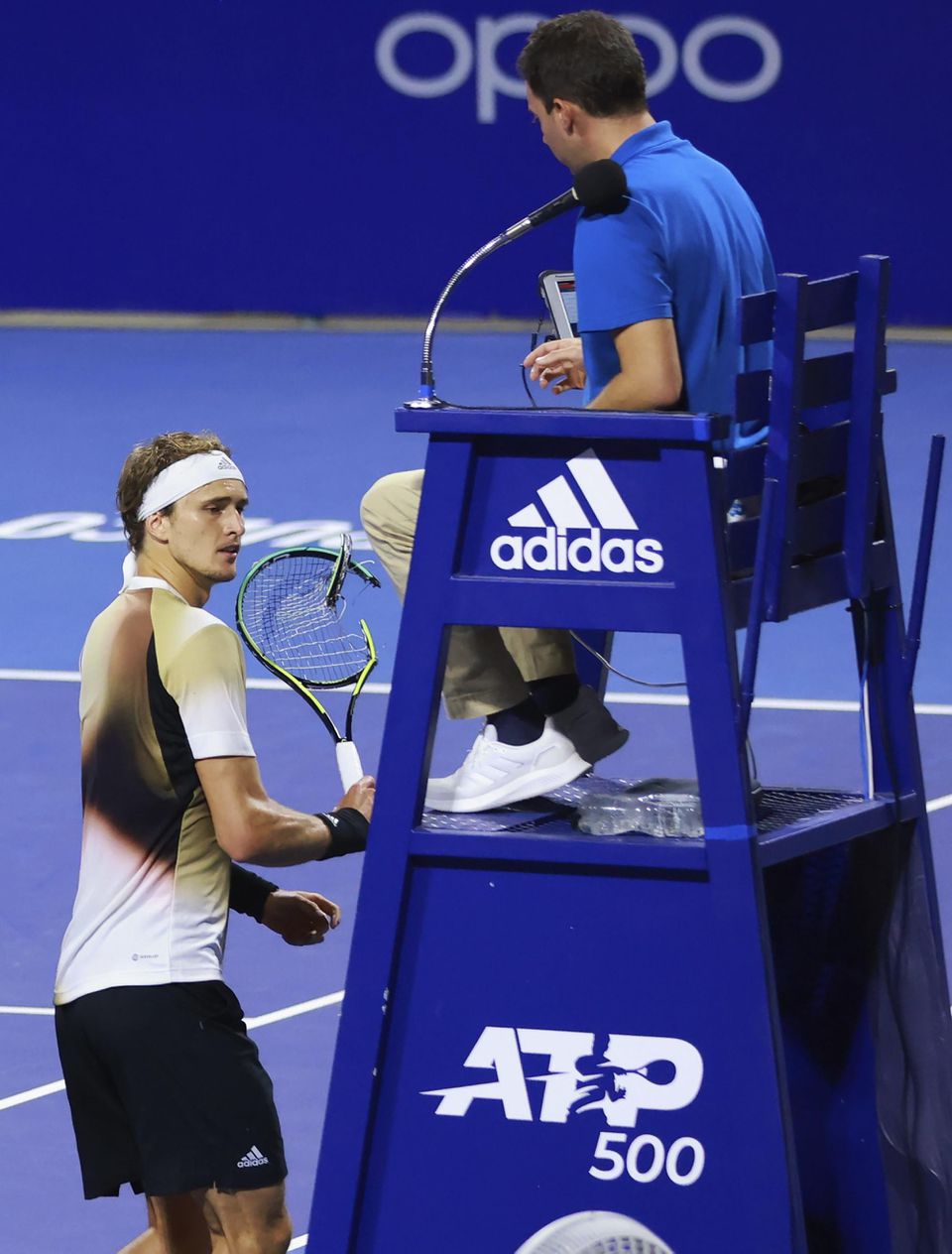 Krátko po skončení zápasu prešiel Zverev k empajru, do ktorého začal nahnevane udierať raketou a takmer trafil nohy rozhodcu. Pred ďalšími údermi mu vulgárne nadával. ATP ho za to vylúčila z dvojhry a nemohol tak v Acapulcu obhájiť titul. Informáciu priniesla agentúra AP.