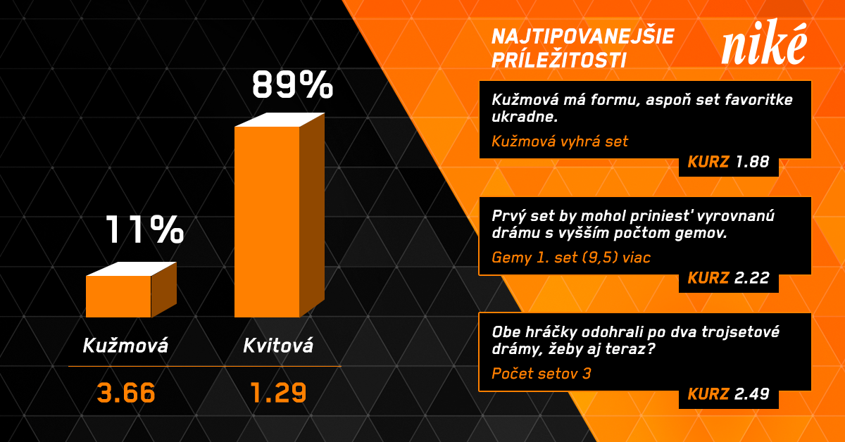 Je pravda, že Kvitová je favoritkou duelu, ale Kužmová môže prekvapiť minimálne ziskom setu. Ak sa súperky nezľakne, môže vyhrať aj celý zápas.