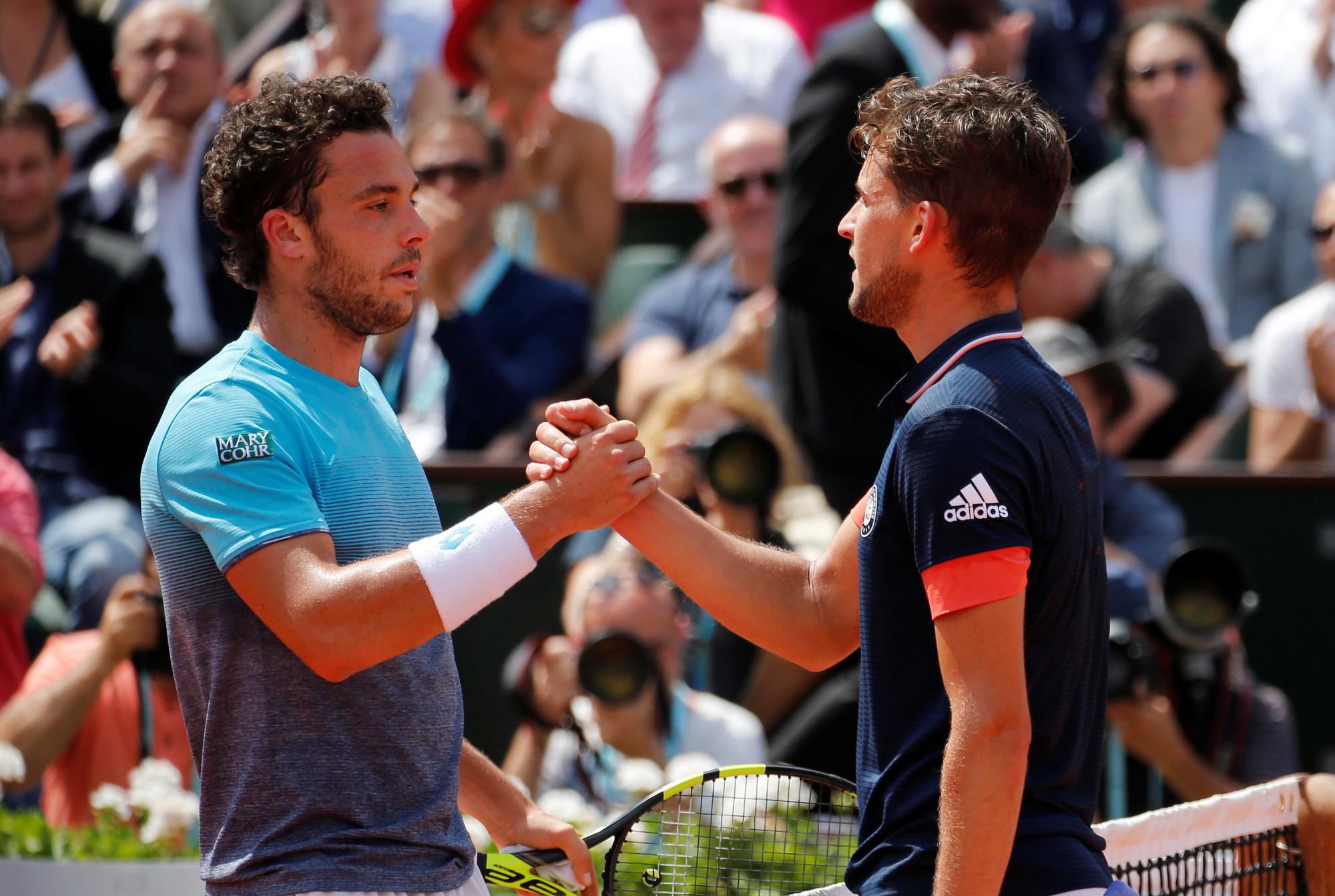 Thiem sa stal prvým finalistom, keď si ako siedmy nasadený v prvom semifinále poradil s prekvapením parížskeho grandslamu Talianom Marcom Cecchinatom za 2:20 h v troch setoch 7:5, 7:6 (10), 6:1.