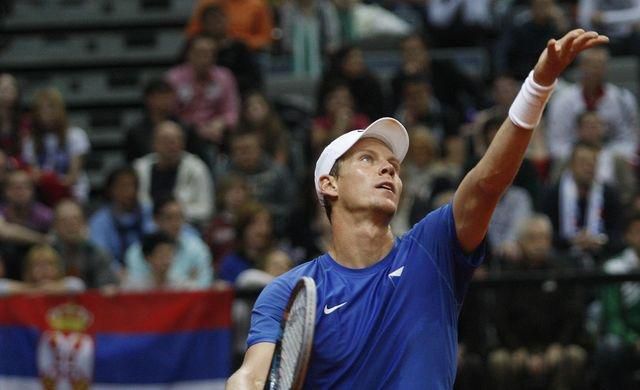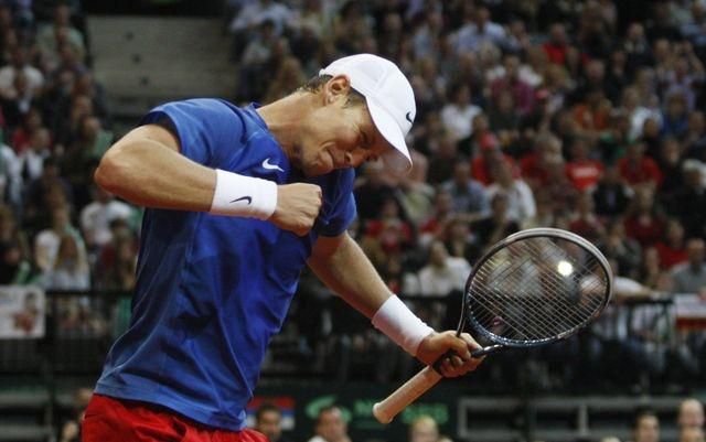 O postupový bod sa na antuke v O2 Arene postaral Tomáš Berdych, ktorý v súboji jednotiek oboch tímov a zároveň renkingových susedov v Top 10 zdolal Janka Tipsareviča za 225 minút 7:6 (6), 7:6 (6), 7:6 (7). V tajbrejku tretieho setu dosiahol obrat z 3:6 na 7:6. Nevyužil síce mečbal pri vlastnom podaní, ale následny na príjme už áno.Česko si 14. - 16. septembra v semifinále zmeria sily s postupujúcim z duelu Argentína - Chorvátsko. Juhoameričania vedú na antuke v Buenos Aires po sobotňajšej štvorhre 2:1, nedeľňajší program sa začal o 15.30 h SELČ. Česi by cestovali do Argentíny alebo hostili Chorvátov.
