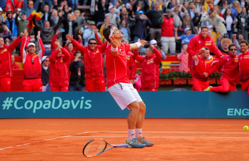 Francúzi vedú nad Talianskom v Janove už 3:1. Obhajcov titulu poslal definitívne do semifinále Lucas Pouille, ktorý si poradil v nedeľu s Fabiom Fogninim 2:6, 6:1, 7:6 (3) a 6:3. Francúzi tak vedú už 3:1. Vo Valencii je stav duelu Španielska s Nemeckom nerozhodný 2:2, keď sa o druhý bod pre domácich postaral Rafael Nadal. Ten zdolal Alexandra Zvereva hladko 6:1, 6:4, 6:4. O všetkom tak rozhodla až záverečná dvojhra, v ktorej David Ferrer v piatich setoch vyhral nad Philippom Kohlschreiberom 7:6 (1), 3:6, 7:6 (4), 4:6 a 7:5.