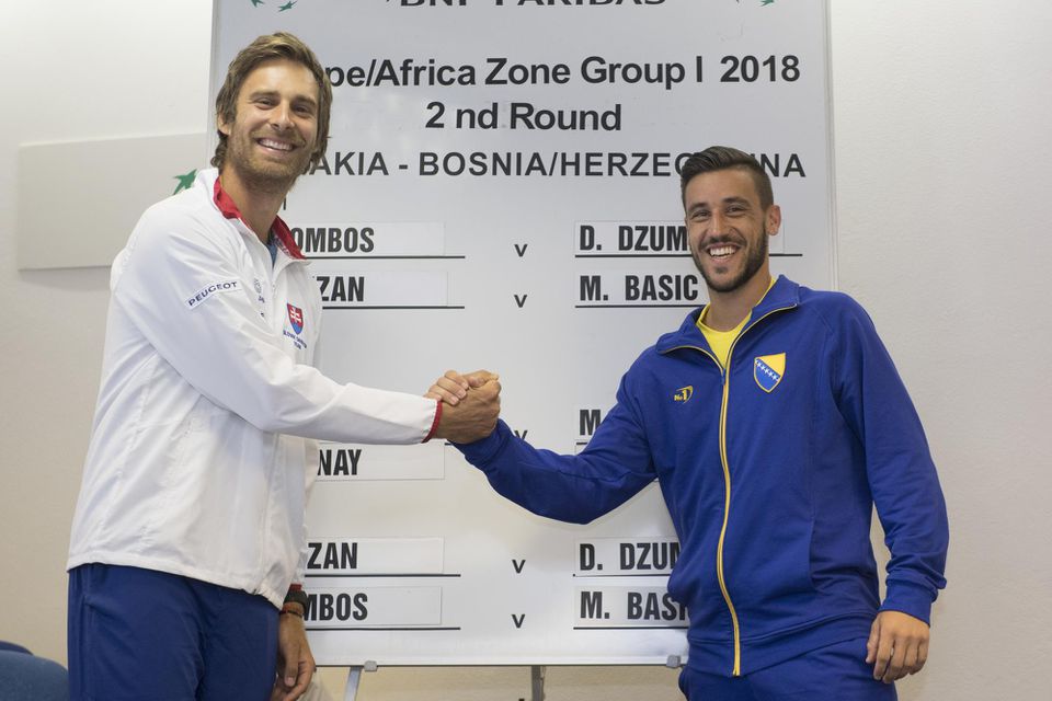 Slovenská tenisová dvojka Norbert Gombos a jednotka Bosny a Hercegoviny Damir Džumhur nastúpia v piatok o 16.00 h proti sebe v úvodnej dvojhre stretnutia 2. kola 1. skupiny euro-africkej zóny Davisovho pohára.