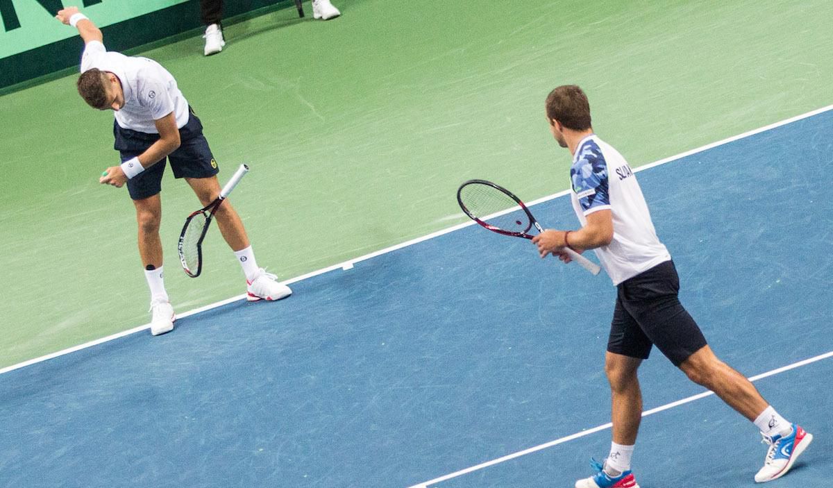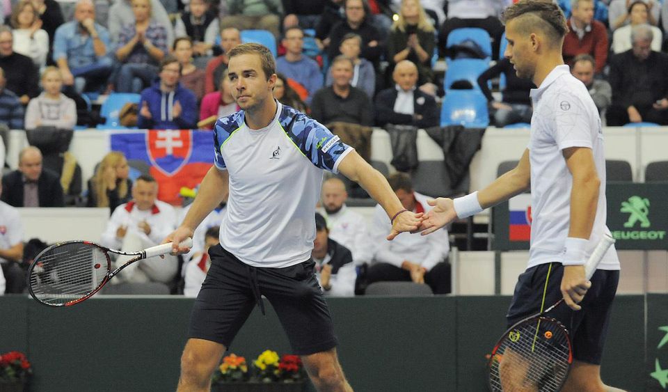 O druhý bod pre maďarské farby sa na harde v bratislavskom NTC postarali v sobotňajšej štvorhre Márton Fucsovics s Attilom Balázsom, ktorí nečakane zdolali pár Martin Kližan, Andrej Martin po päťsetovej dráme 6:3, 2:6, 6:3, 6:7 (5). 6:1.