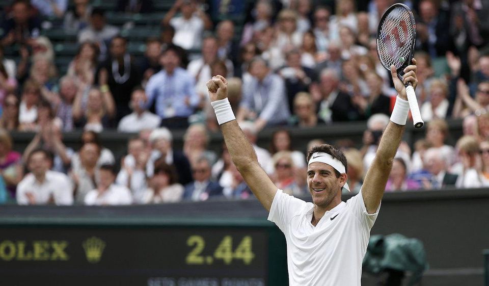 Argentínsky rekonvalescent Juan Martín Del Potro zvíťazil nad švajčiarskym tenistom Stanom Wawrinkom nasadeným ako štvrtým za 164 minút 3:6, 6:3, 7:6 (2), 6:3 v atraktívnom dueli 2. kola dvojhry Wimbledonu.