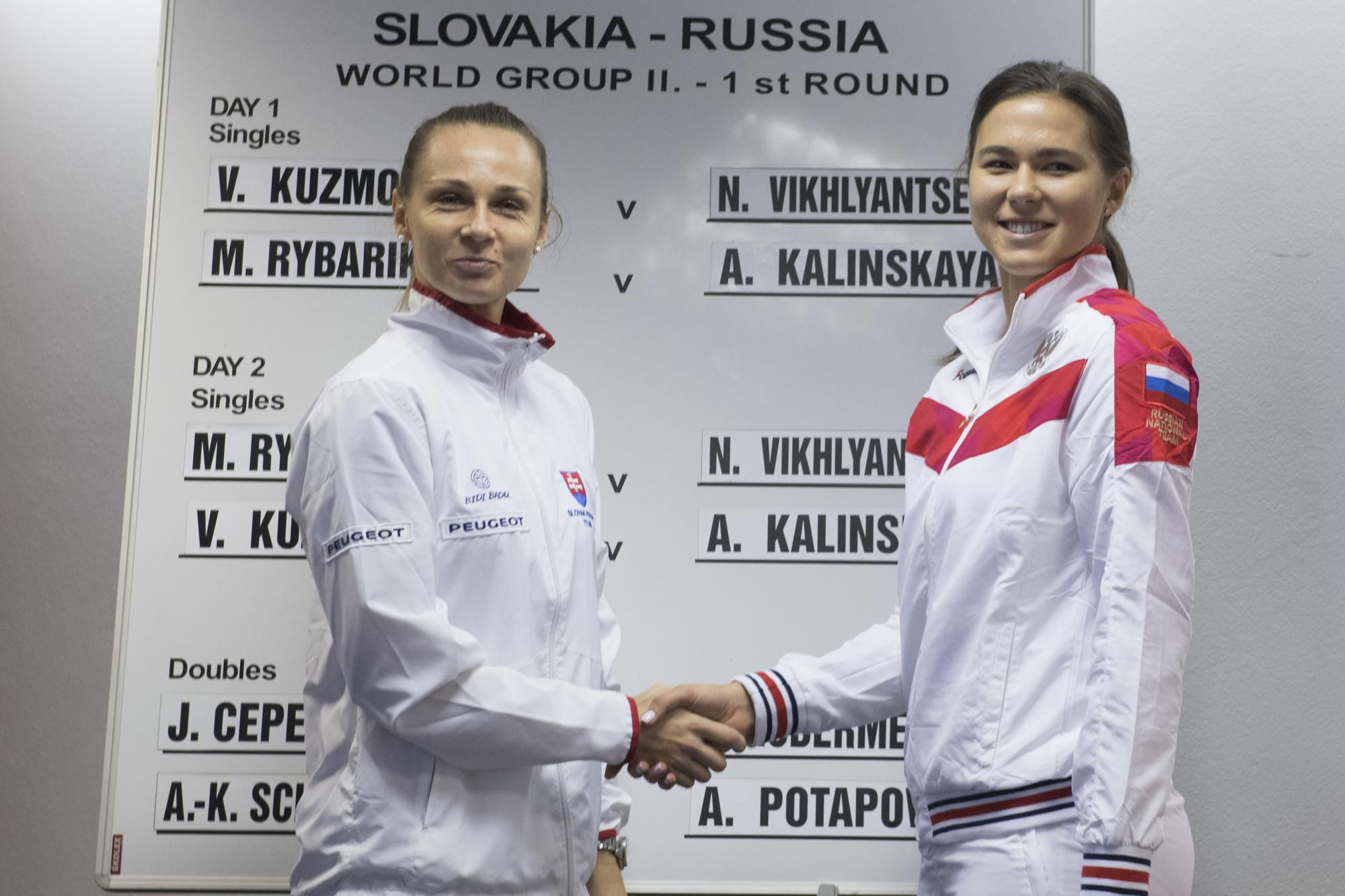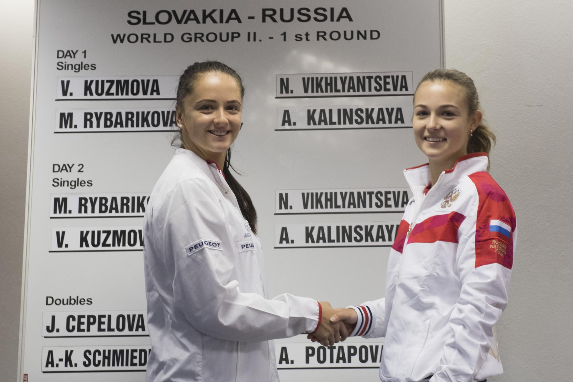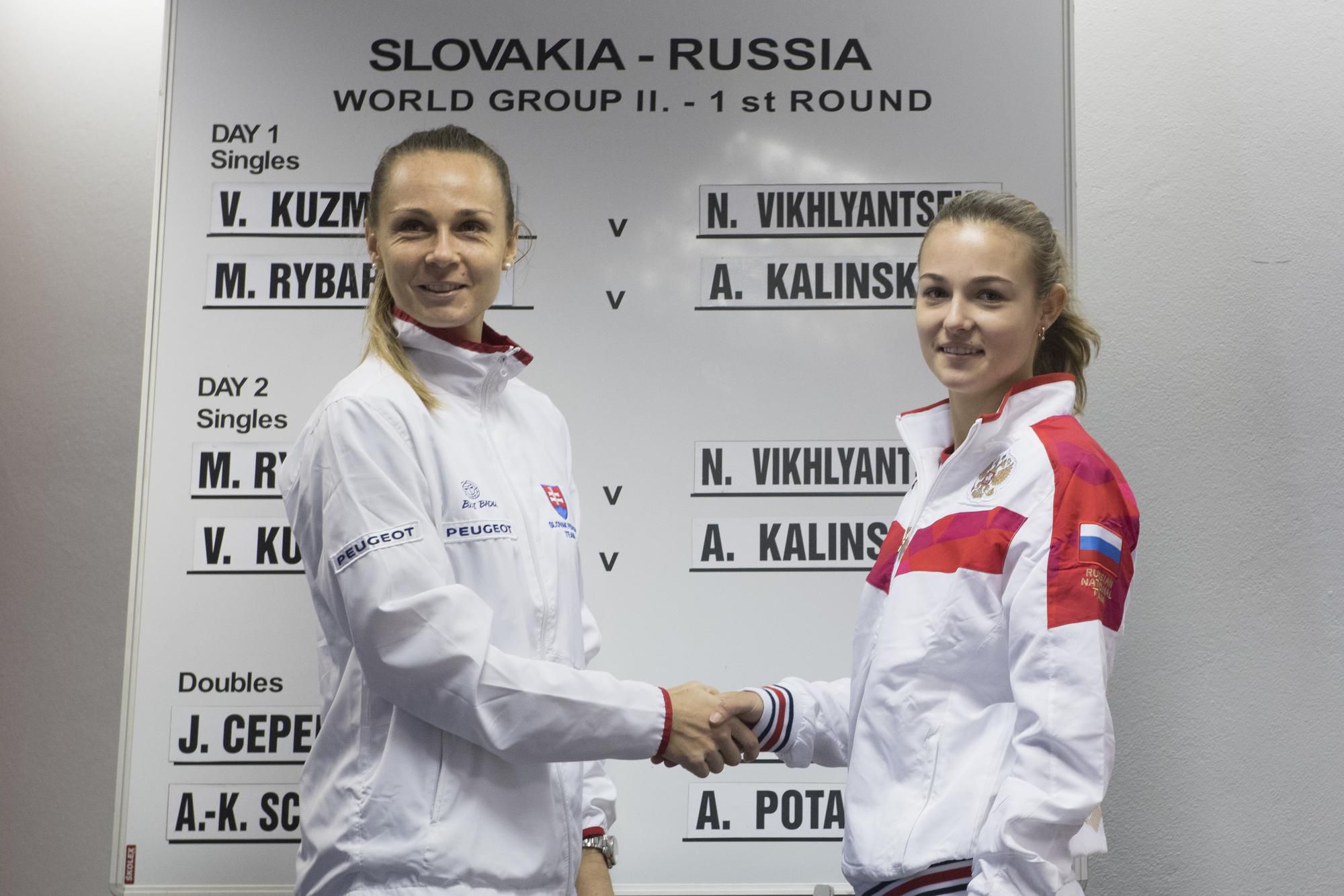 Domáca dvojka Viktória Kužmová a jednotka kádra hostiek Natalia Vichľancevová v sobotu o 15.30 h otvoria v Bratislave víkendové stretnutie Slovensko - Rusko v 1. kole II. svetovej skupiny Pohára federácie 2018 tenisových reprezentačných družstiev žien.