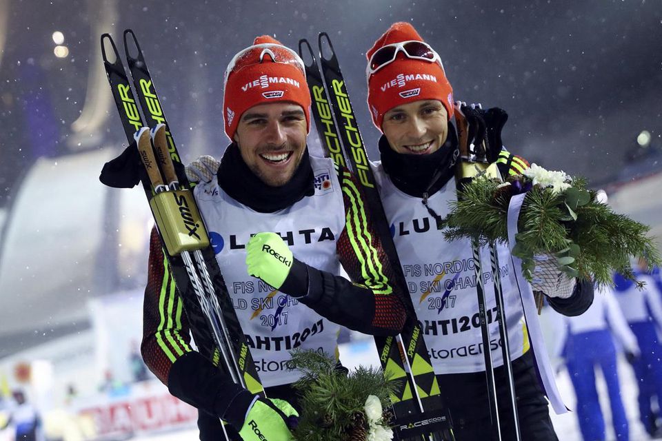 Nemeckí reprezentanti v severskej kombinácii Eric Frenzel a Johannes Rydzek triumfovali v piatkovom tímšprinte na MS v Lahti. Ryzdek si tak na prebiehajúcom šampionáte pripísal štvrtú zlatú medailu zo štyroch súťaží, čo sa predtým žiadnemu združenárovi v histórii nepodarilo.