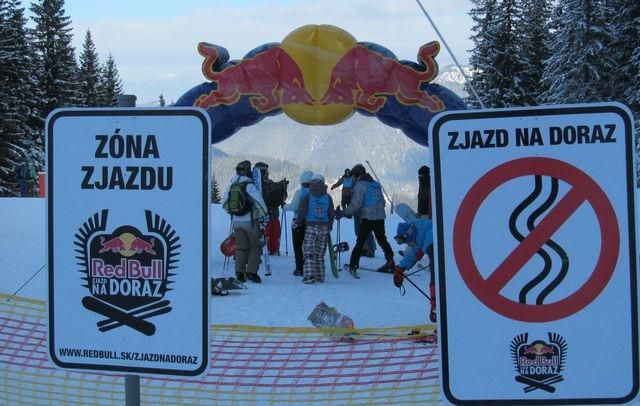 V sobotu sa v Nízkych Tatrách, v stredisku Jasná, uskutočnila akcia, počas ktorej si zúčastnení pretekári mohli vychutnať naozaj veľkú dávku adrenalínu. Strkanica, tlačenica, lakťovky, blokovanie súpera, paličky medzi lyže - to všetko sú povolené zbrane na štarte masového zjazdu Red Bull Zjazd na Doraz. Do "akcie" sa zapojilo až 620 odvážlivcov, no "len" 300 vyvolených sa mohlo prebojovať do nedeľňajšieho hlavného programu.