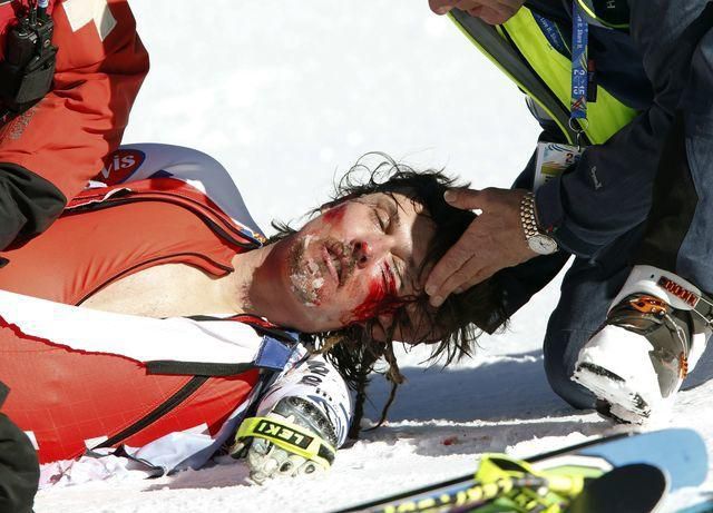 Cieľom preletel v neprirodzenej polohe a po kotrmelcoch zostal dlhé minúty ležať v cieľovom priestore, televízne stanice jeho pád radšej ani neopakovali. Podľa agentúry DPA bol tretí muž kitzbühelskej kombinácie celý čas pri vedomí a hýbal končatinami. Ošetrovali ho priamo na trati pred vystrašenými divákmi, po zhruba štvrťhodinovom prerušení ho transportovali kanadskými saňami do nemocnice. Podľa agentúrnych fotografií mal krvavé rany na tvári.